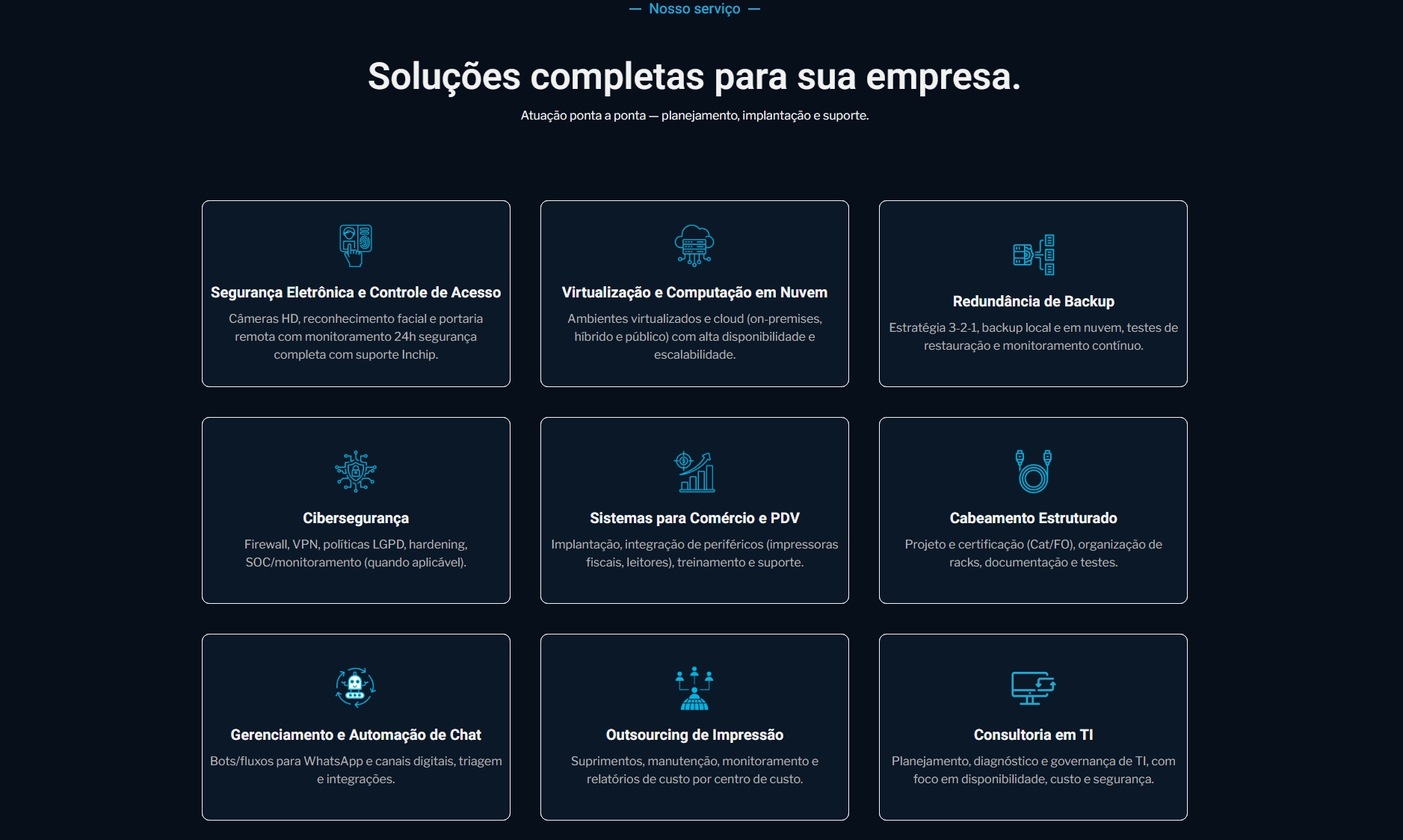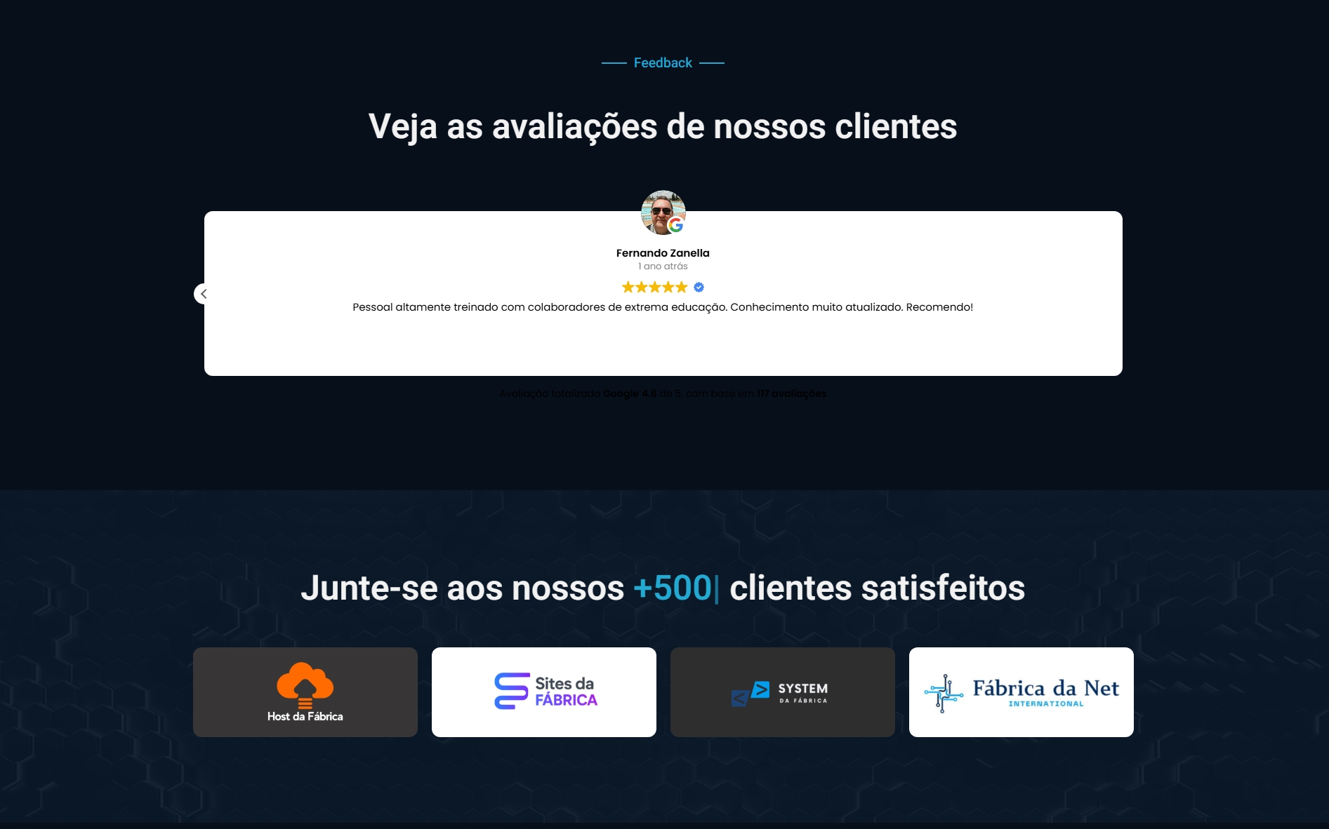 Arthur Vínicius Rösler27 Novembro 2025Trustindex verifica se a fonte original da avaliação é Google. Serviço muito bom e qualificado! BRSollar Energia27 Novembro 2025Trustindex verifica se a fonte original da avaliação é Google. Estou muito satisfeito, recomendo. Profissional muito rápido, entrega o que promete. Marlene Souza29 Outubro 2025Trustindex verifica se a fonte original da avaliação é Google. Rapidez e agilidade nos processos. Filipe Martins7 Janeiro 2025Trustindex verifica se a fonte original da avaliação é Google. Excelente experiência. Entenderam a minha demanda, foram rápidos na execução. Recomendo! André Fernandes19 Dezembro 2024Trustindex verifica se a fonte original da avaliação é Google. A assistência é muito rápida em atender as nossas necessidades. Lucas Pereira2 Dezembro 2024Trustindex verifica se a fonte original da avaliação é Google. Serviço rápido de de muita qualidade, Vitor e o time são muito bons no que fazem, nosso site melhorou 1000% depois que acionamos eles, RECOMENDO! IRANILSON MORAES10 Julho 2023Trustindex verifica se a fonte original da avaliação é Google. Atendimento bacana e solucionou rápido nosso serviço. MonteCare Corretora3 Julho 2023Trustindex verifica se a fonte original da avaliação é Google. Achei através de anúncios, entrei em contato, o Vitor me deu super atenção na tentativa de um problema com meu site antigo, nao conseguinos resolver pois eu perdi meus acessos de senhas , mas resolvemos criar outro site , por fim foi a melhor escola que fiz pois o site que foi feito pelo Vitor ficou infinitamente melhor e mais bonito que o anterior e atencao dada as detalhes foi top !!! Vlw a experiência indico os servicos Fabrica da Net e top demais Vinicius9 Junho 2023Trustindex verifica se a fonte original da avaliação é Google. Os caras são ótimos ,fizeram meu site e ficou top. Mas o diferencial foi o pós venda ! Totalmente maravilhosoAvaliação totalizada Google 5.0 de 5, com base em 12 avaliações